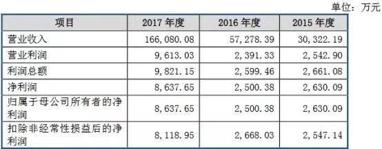2015-2017年,移远通信分别实现营业收入3.03亿元、5.73亿元和16.61亿元,同期净利润分别为2630.09万元、2500.38万元和8637.65万元。